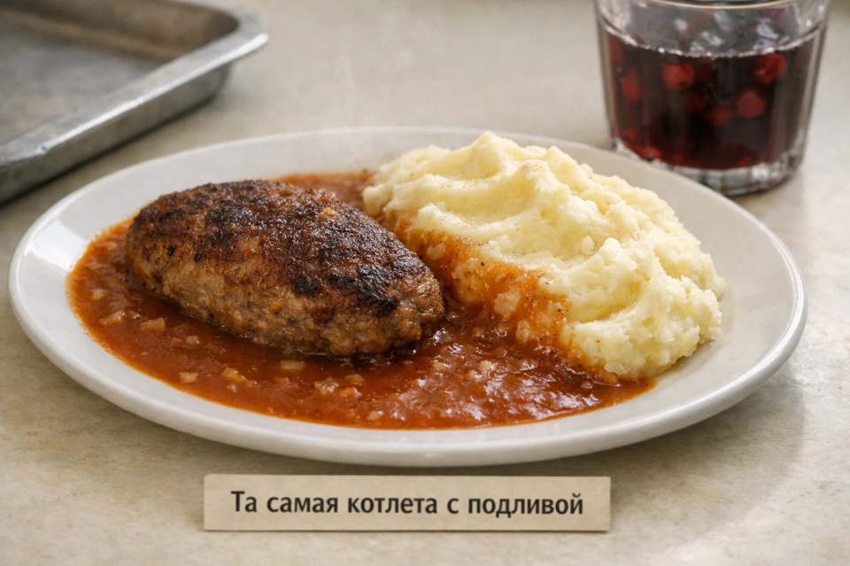 Начнём с главного парадокса. Казалось бы, столовая — это место, где экономили на всём. Нормы, ГОСТы, строгий учёт каждого грамма. И тем не менее именно столовские котлеты многие вспоминают с ностальгией, а домашние почему-то получаются суше и жёстче. В чём фокус?