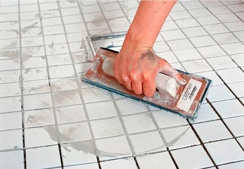 - Вдавливайте затирку в швы по диагонали, максимально плотно заполняя их. Проходите по несколько раз, чтобы не оставалось пустот.