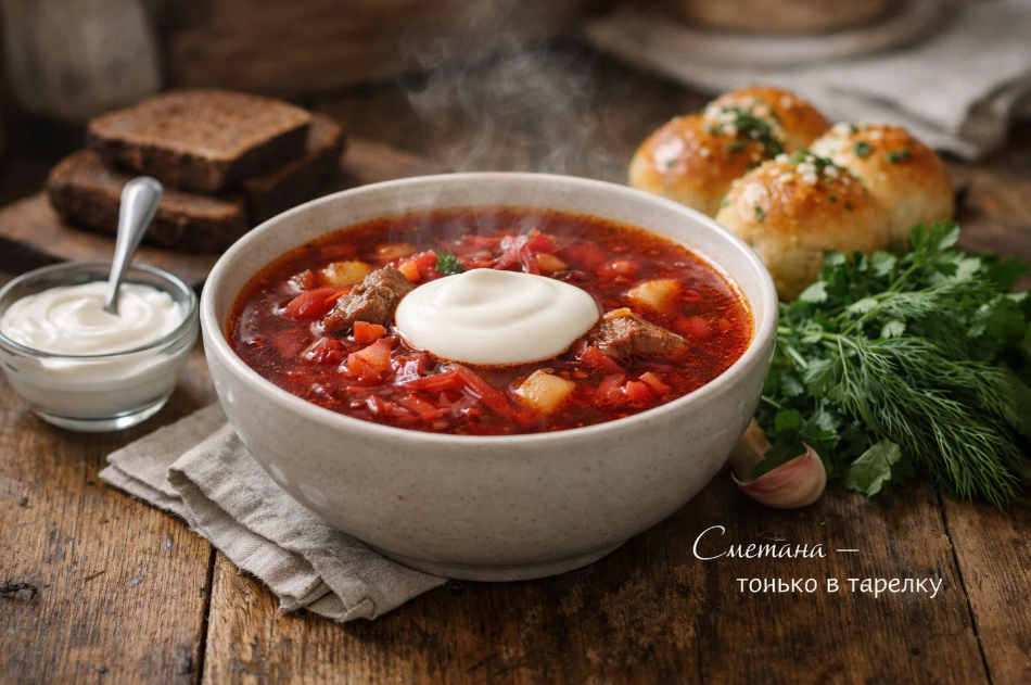 Борщ занимает особое место в кулинарной традиции славянских народов. Это блюдо передаётся из поколения в поколение, обрастая семейными секретами и хитростями. Каждая хозяйка уверена, что именно её рецепт самый правильный, самый вкусный и единственно верный. Однако существует одна ошибка, которую допускают даже опытные кулинары — добавление сметаны непосредственно в кастрюлю во время приготовления. Давайте разберёмся, почему этого делать категорически нельзя и как правильно подавать это великолепное первое блюдо.