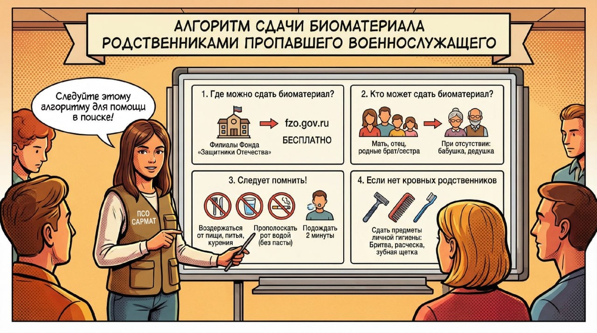 ❗️Публикуем алгоритм сдачи биоматериала родственниками пропавшего военнослужащего