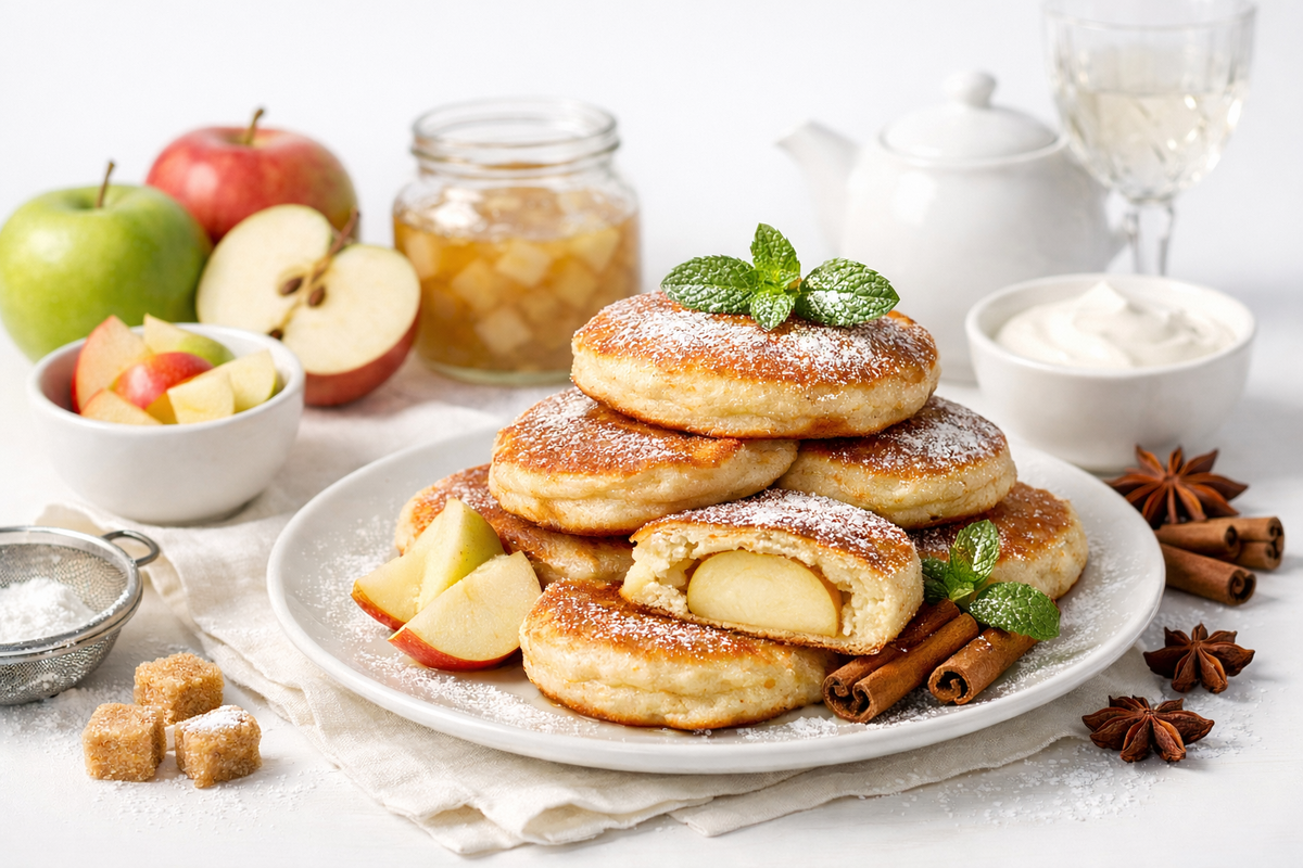 Есть рецепт, который выглядит как фокус: разрезаешь яблоко кольцами, окунаешь в тесто – и на выходе получаешь оладьи с сочной “начинкой” без возни. Снаружи румяная корочка, внутри тёплое яблоко с лёгкой кислинкой. Делается быстро, а эффект – как будто старалась полчаса.
