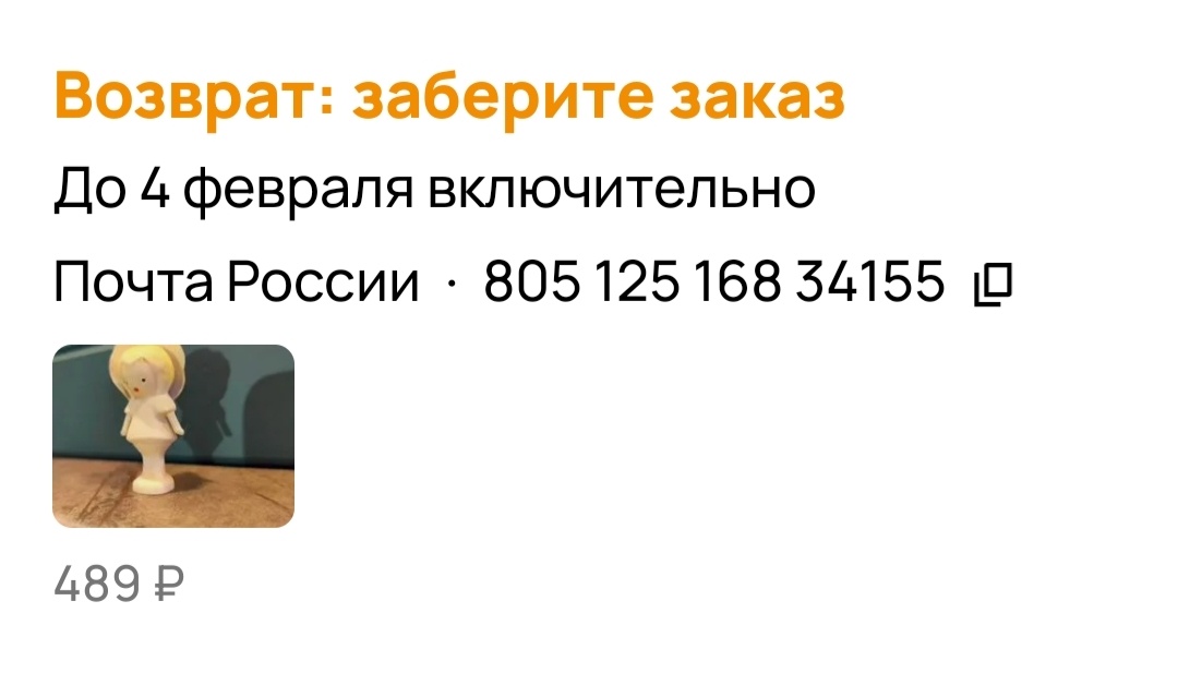 Один возврат - это маленькая фигурка из колкого пластика из набора "Веселые человечки". Фигурке около 65 лет, раньше их делали неподалеку от нашего города в исправительном (трудовом) санатории. Была такая практика в 60-х - 70х годах, пьяниц на несколько месяцев закрывали в таких учереждениях и "исправляли". Не знаю, эффективно ли, но судя по всему не очень. Этот возврат я пока не забрала, почта далеко, продлила хранение через поддержку Авито. Когда получу, у покупателя будет возможность получить свой заслуженный кол.