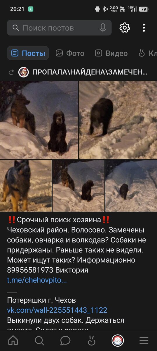 В Чеховском районе Московской области в новогодние праздники были найдены две собаки, овчарка и кто-то большой чёрный бородатый. Посты с поиском хозяев висели-висели, ни до чего так и не довиселись. Просили нашедших посмотреть клейма, они не нашли или не смотрели. Потом нашедшие стали говорить, что держать их не могут и выпустят.