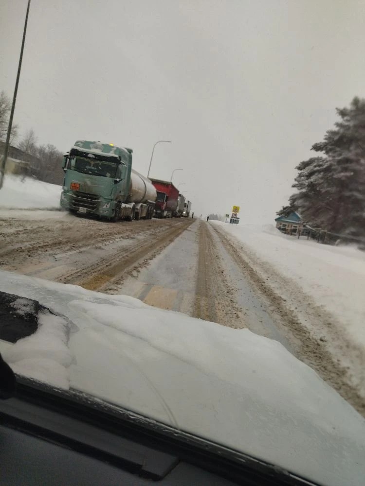 В связи с закрытием трассы Алексеевск-Высокий Колок для большегрузных автомобилей, около села Аппаково образовалась пробка из 152 фур