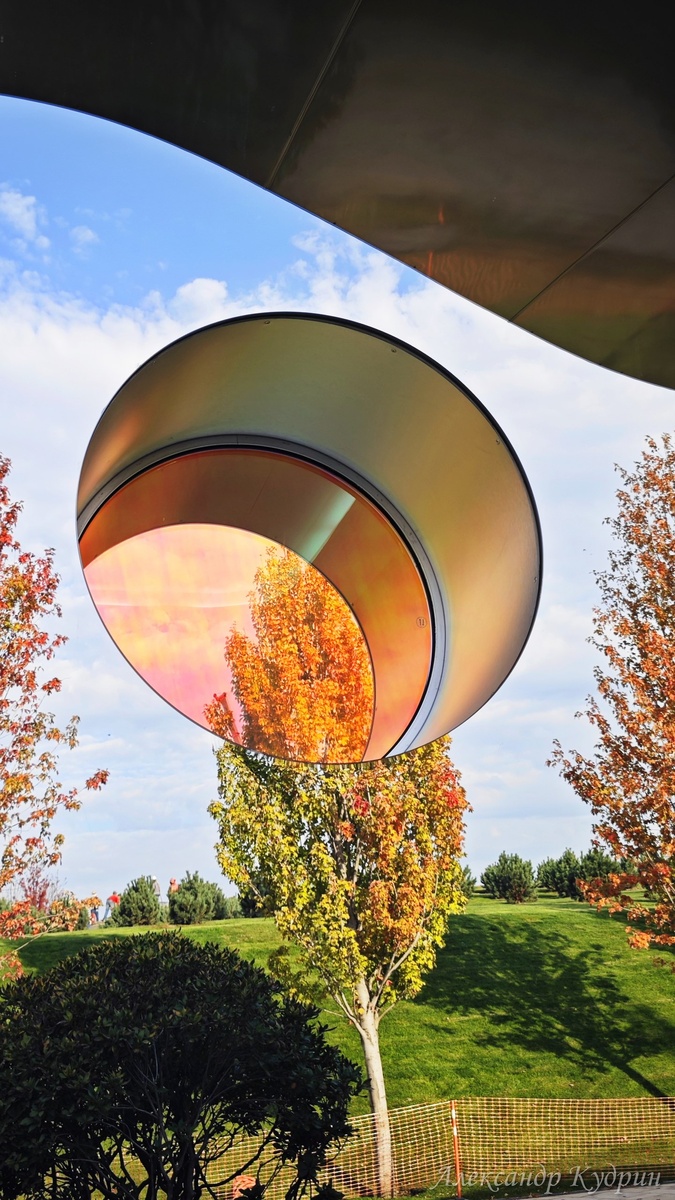 , притаился один объект, который смело можно назвать арт-инсталляцией. Или даже порталом. Вы наверняка видели его на фото — тот самый зеркальный параллелепипед, который растворяется в деревьях и небе. Днём он просто играет с отражениями, но главное — внутри. Заходишь... и словно проваливаешься в какую-то инопланетную или очень дорогую сказку. Перламутровые двери, иллюминаторы с видом на зелень (да-да, тут есть вид на парк!), а на потолке — мерцающая разноцветная подсветка. Всё блестит, переливается, и это пространство настолько стерильно-современное, что напоминает то ли капсульный отель из будущего, то ли декорации к фильму про межгалактические перелёты. И это, на удивление, самое чистое и бесплатное «космическое путешествие» в городе. Пока народ не ринулся сюда толпами (а я уверен, что очередь скоро будет, как за сакурой в японский сад), здесь можн Показать полностью...