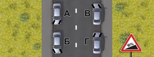 передние колеса в положение: 1- А и Г 2- Б и В 3- А и В 4- Б и Г