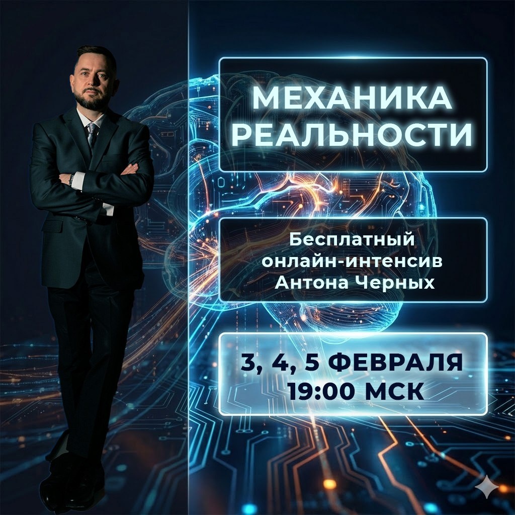 » В среду мы разбирали, почему копание в детстве и бесконечный анализ не помогают. Книги прочитаны, инсайты получены, а фоновая тревога и «день сурка» никуда не деваются. Проблема не в вас. Проблема в отсутствии Системы. Вы пытаетесь починить психику «отверткой» (анализом прошлого), когда там нужен «инженерный пульт управления» (работа с вниманием в настоящем). Я готов показать вам, как это работает на практике. Не на словах, а на схемах, формулах и упражнениях. Официально открываю регистрацию на 3-дневный онлайн-интенсив «МЕХАНИКА РЕАЛЬНОСТИ». 🗓 Даты: 3, 4, 5 февраля (Вторник, Среда, Четверг) ⏰ Время: 19:00 МСК 📍 Формат: Живые эфиры + Практика + Закрытый чат участников ПРОГРАММА: ⚙️ ДЕНЬ 1. Физика выгорания (3 февраля, Вт) Разберем архитектуру вашей личности. Вы увидите на схеме, куда конкретно уходит 90% вашей энергии и почему «позитивное мышление» часто делает только хуже. Результат: Поймете истинную техническую причину своего состояния. 👁 ДЕНЬ 2. Инструменты тишины (4 фе