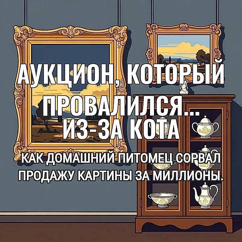 Атмосфера была торжественной — ставки росли, публика затаила дыхание. 🖼️💰 Когда цена перевалила за миллион фунтов, в зал проскользнул пушистый нарушитель — кот антикварного дома. 🐈 Он с разбега прыгнул на подиум и сшиб картину с мольберта! Полотно ударилось о микрофон, а купец, решив, что это знак судьбы, отказался от ставки. Лот не продали, а репутация дома пострадала. Ирония в том, что этот же кот позже стал «талисманом» аукциона и источником прибыли — его изображение напечатали на сувенирных каталогах, которые разошлись мгновенно. 😹
