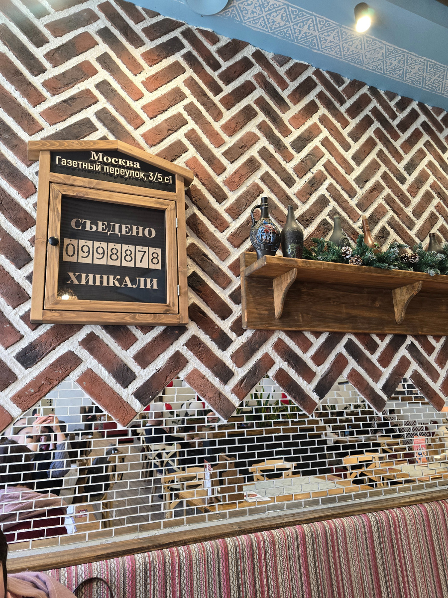 В самом начале, когда официант только принес нам хинкали, мы попытались уточнить у него, где чей заказ, но поставив тарелку, он быстро отвлёкся на соседний стол и то, что мы спросили, видимо не услышал или не захотел слышать.