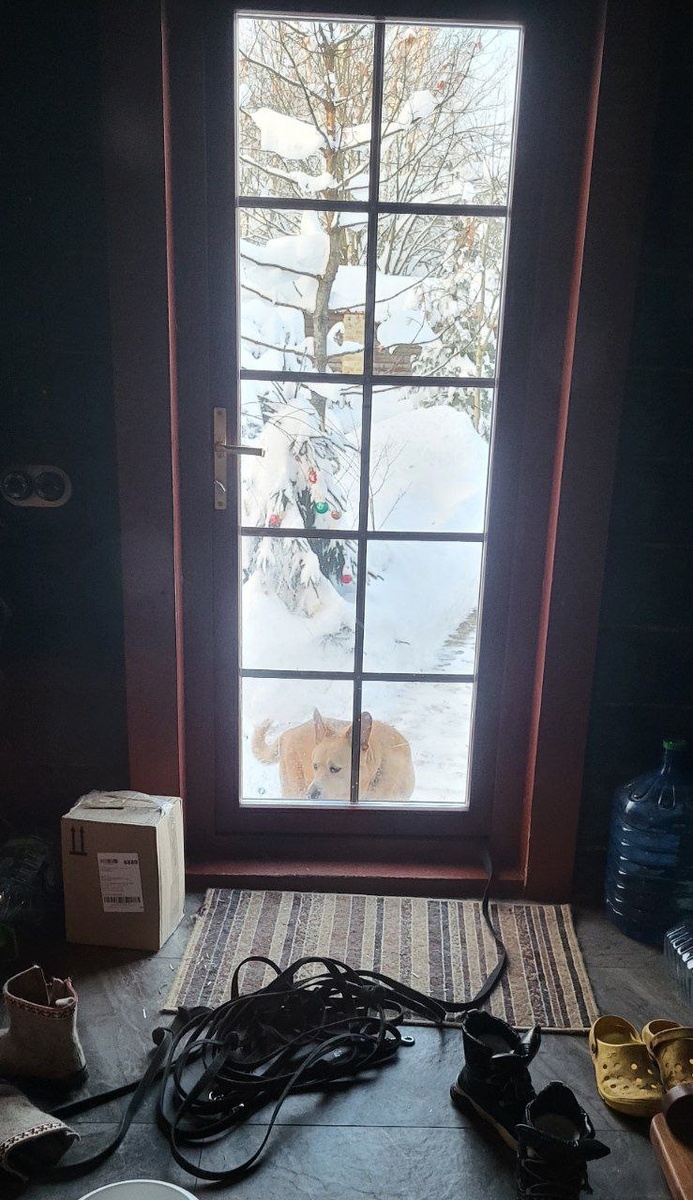 Он не столько в дом хочет погреться, сколько ему тоже нужен ДОМ теплый и родной, особенно зимой... Летом ему в его личных апартаментах отлично! А зима... Да еще и такая... Опять завела домой, не знаю что он там делает Надеюсь, спит на лежаке Жанны