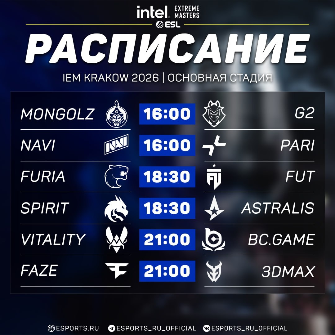 🗓 Расписание первого дня основной стадии IEM Krakow 2026