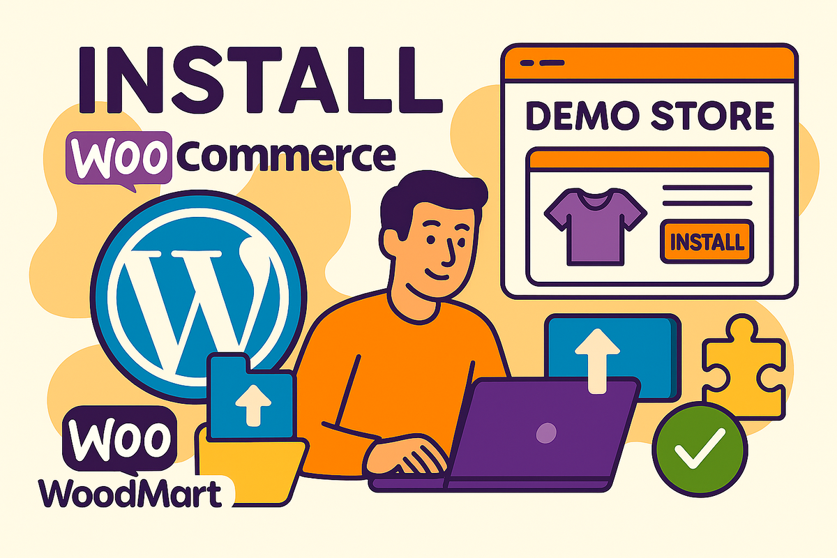После установки темы и плагинов переходим к демо‑контенту. Преимущество Woodmart в том, что он позволяет установить готовые демо‑сайты: с уже настроенными страницами, меню, товарами, главной страницей и т.д. Это сильно экономит время и помогает новичкам быстрее понять, как всё устроено. В админке ищем раздел Woodmart (обычно он появляется в меню слева) или пункт «Woodmart Dashboard» / «Демо‑контент». Открываем его. Там вы увидите список демо‑шаблонов: разные варианты магазинов с разным дизайном. Выбираем тот, который вам нравится, и нажимаем «Импортировать» или «Install demo». Обычно система спросит, что именно импортировать: страницы, меню, виджеты, настройки, товары, изображения. Для новичков проще всего выбрать полный импорт, чтобы получить готовый пример магазина.