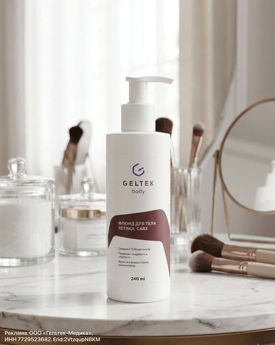 А там тоже есть кожа 😁 Кожа тела тоже теряет упругость, страдает от фотостарения и гиперкератоза. Так что, сегодня протестируем флюид для тела с ретинолом Retinol Care от Гельтек. Я выбрала этот флюид, опираясь на синергию активов: ✅Ретинол (0,1%) — стимулирует обновление, повышает плотность кожи и буквально «стирает» мелкие заломы. ✅Витамин С — мощный антиоксидант. Он не только дает тот самый glow-эффект, но и работает с постакне (актуально для зоны спины и груди). ✅Церамиды и липиды — мой личный пунктик. Ретинол может подсушивать, поэтому мы сразу укрепляем барьер и удерживаем влагу. ✅Д-пантенол и масло виноградных косточек — чтобы кожа чувствовала себя максимально комфортно, без раздражений. Как использовать? ✅Только вечер. Ретинол и солнце — плохие союзники. ✅На сухую кожу. Наносим массирующими движениями до полного впитывания. ✅ Обязательно SPF. Если вы наносите флюид на плечи или декольте и планируете завтра выйти на солнце — защита SPF30 минимум. Иначе вместо ровного