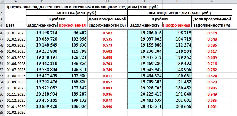 Просроченная задолженность по ипотечным и жилищным кредитам