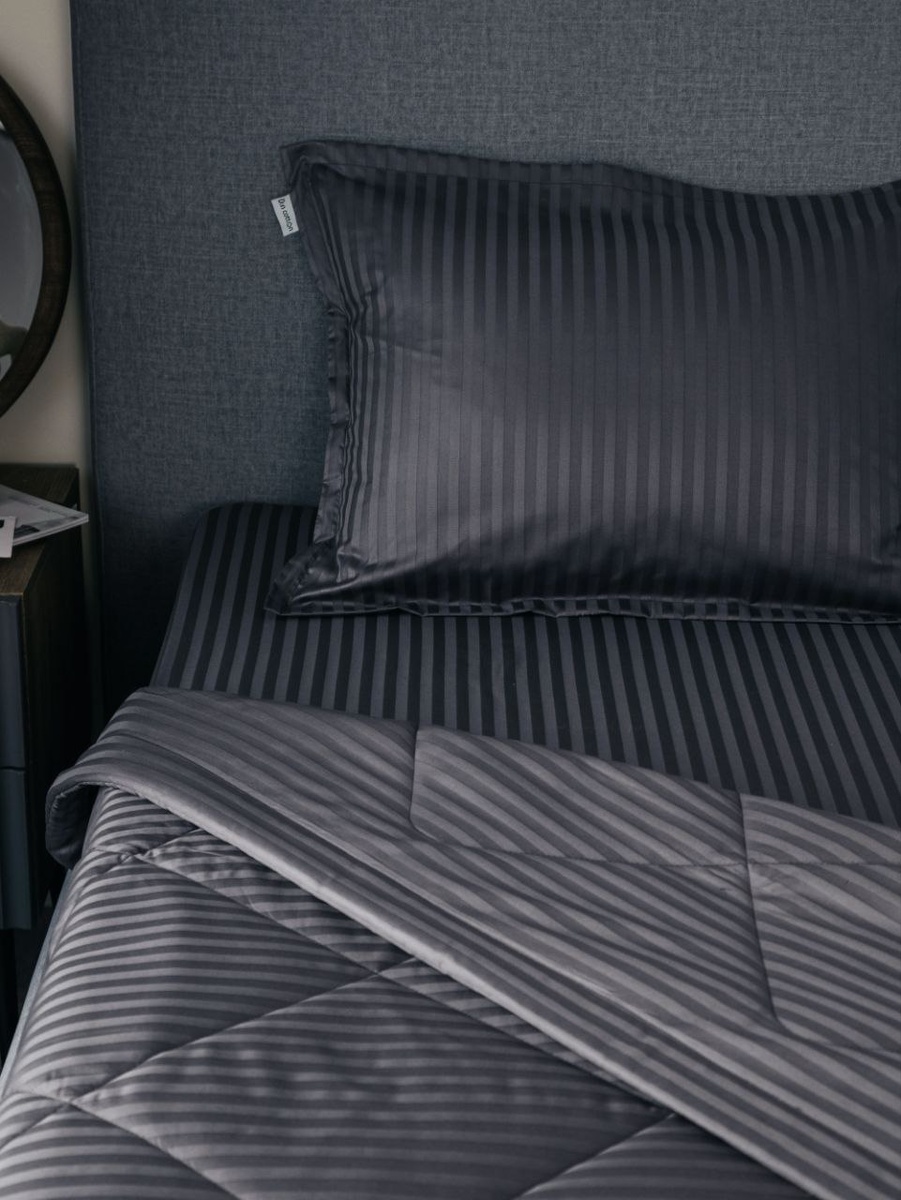 Для тех, кто любит спокойные, тёмные и нейтральные оттенки, мы создали постельное бельё Doncotton с готовым одеялом из страйп-сатина в цвете