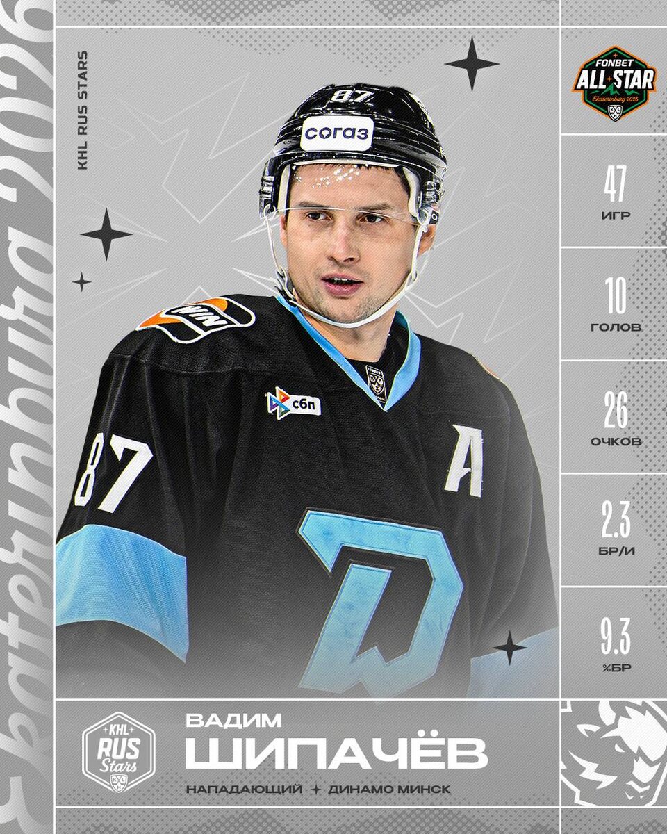 Лучший бомбардир в истории КХЛ Вадим Шипачёв 🦬 отправится на седьмой в карьере звёздный уикэнд!