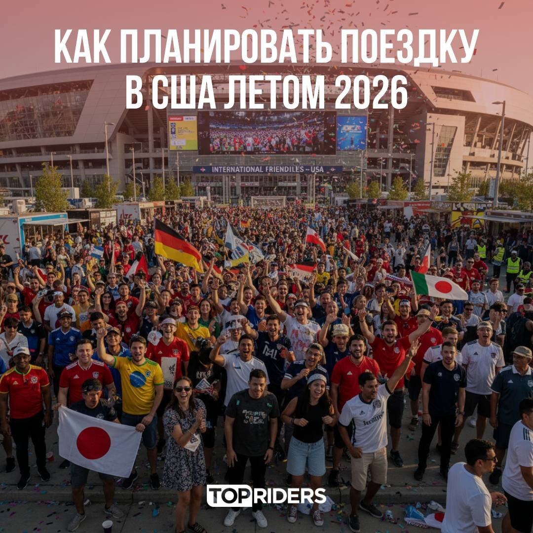 С 11 июня по 19 июля во многих городах США состоятся матчи ЧМ по футболу. События такого масштаба традиционно привлекают огромное количество зрителей со всего мира и подстёгивают туристический спрос. А это значит, что цены на отели и транспорт будут выше, чем обычно. ❗️Если вы не будете посещать матчи 2026 FIFA World Cup и мечтаете о размеренном отпуске, стоит учитывать это при организации поездки. 📍В каких городах США пройдут матчи: Сиэтл, Сан-Франциско, Лос-Анджелес, Канзас-Сити, Даллас, Хьюстон, Атланта, Бостон, Нью-Йорк, Филадельфия, Майами. А для футбольных болельщиков Госдеп анонсировал систему FIFA PASS, которая позволит пройти собеседование на визу США в срок. За организацией поездки в США с учётом всех нюансов и ваших предпочтений обращайтесь к нашим travel-дизайнерам ⬅️ ❗️Вы также можете забронировать экскурсию в США с проверенными гидами, пока не разобрали все места ⬅️ Оформить визу США ⬅️ #TOPRIDERS