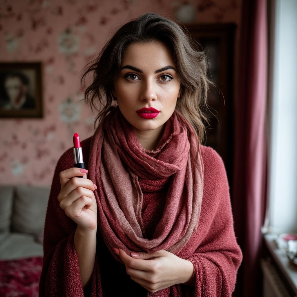 В квартире повисла тяжёлая тишина. Милана стояла, сжимая в одной руке шарф, в другой - помаду. Алексей смотрел на неё.