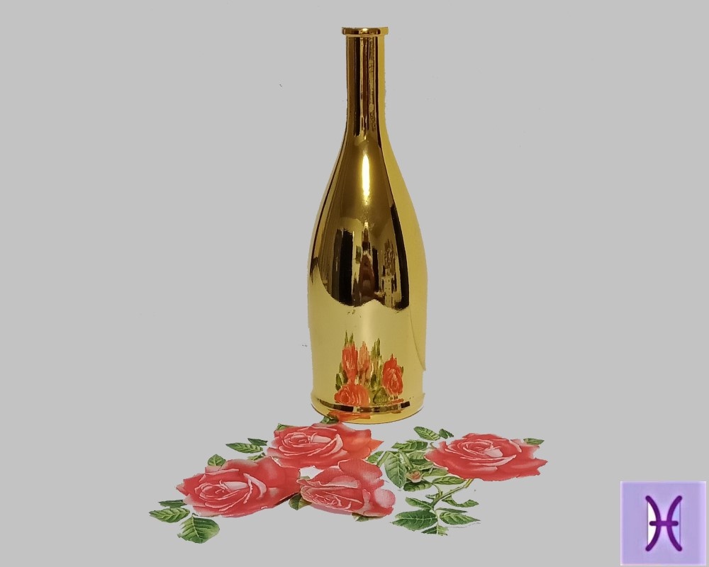 Всем привет. Совсем недавно у меня уже была тема декорирования бутылок. И вот снова бутылки. Только на этот раз декупаж. Приятельница попросила сделать декор бутылки. Бутылка уже была окрашена золотой краской. Какая конкретно краска была использована, я сказать не могу. Единственное, что приятельница мне сказала, что краска из баллончика. Это уже и так было видно. Вот эта бутылочка. И ещё было оговорено, что в декоре должен присутствовать красный цвет. Поэтому было решено сделать декупаж. У меня в запасах нашлась одна салфетка с красными розами. Предполагалось, что бутылка не будет использоваться по прямому назначению, а просто, как яркий элемент в декоре кухни. Так как на бутылке отсутствовала пробка, я думала, чем же закрыть бутылочку. И нашла. У меня как раз закончилась зубная паста. И крышечка от тюбика очень хорошо подошла к горлышку бутылки. И раз уж бутылка чисто декоративная, то крышечку я посадила на клей. Использовала, естественно, очень мною любимый клей Момент кристалл. А д