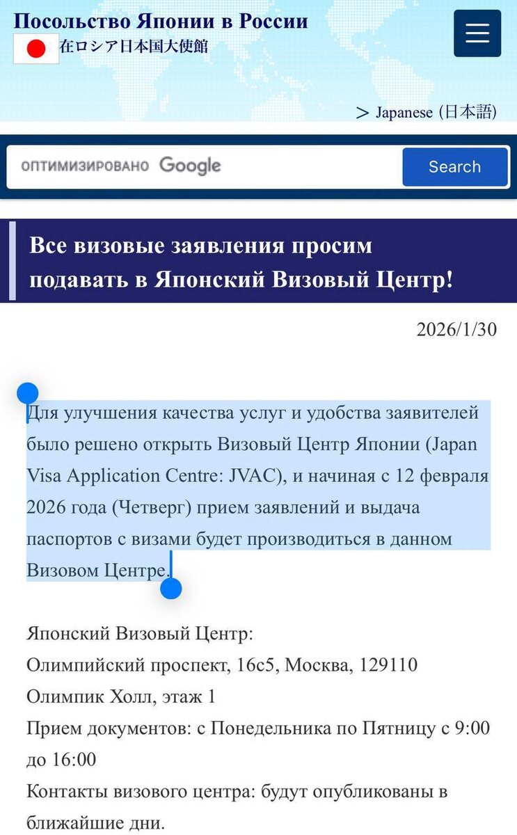 Питере. На сайте Консульского отдела Посольства Японии в РФ подтвердили, что с 12 февраля 2026 года приём всех заявлений на визу и выдача паспортов будут осуществляться уже через официальный Japan Visa Application Centre. Больше не нужно стоять в живой очереди — процесс будет удобнее и быстрее через процедуру записи. Визовый сбор составляет 970 рублей с человека, а консульский сбор с россиян не взымают. Готовимся к отпуску в сезон сакуры 😍 CtrlAltDelights- подписаться