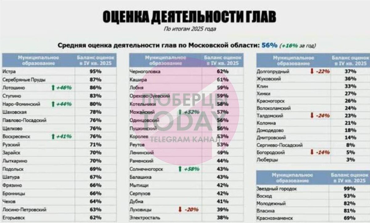 Подмосковье опубликовало годовой рейтинг глав муниципалитетов