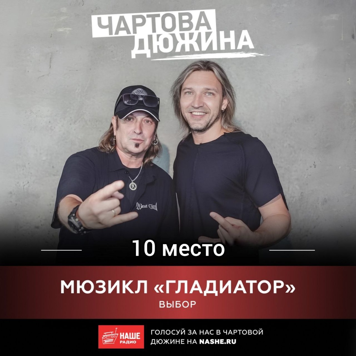 Друзья! «Выбор» из рок-мюзикла «Гладиатор» на этой неделе занимает 10 место в хит-параде «Чартова Дюжина