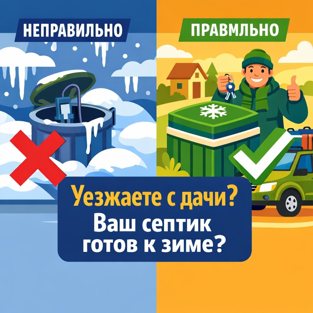 Сезон окончен, и вы готовите дом к зиме: сливаете воду, консервируете систему отопления. А что делать с септиком? Многие просто отключают станцию биоочистки от розетки и уезжают. Результат весной — дорогой ремонт. Рассказываем, как правильно отправить вашу автономную канализацию в «зимнюю спячку», чтобы весной она проснулась здоровой.