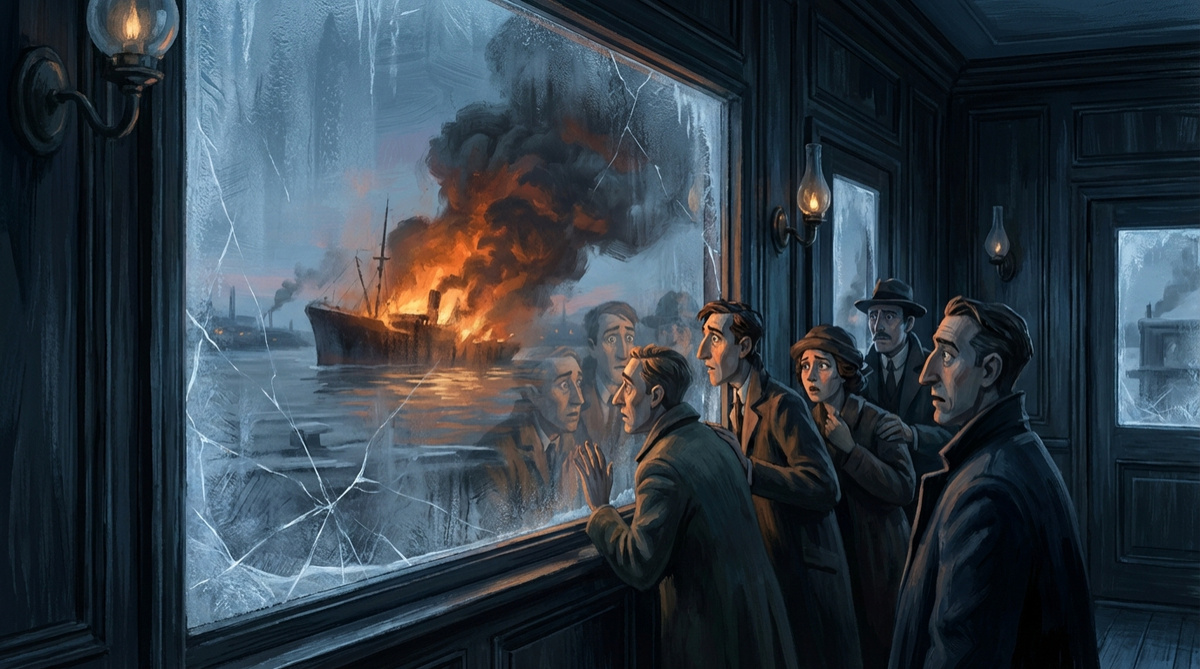 Жители Галифакса — клерки, школьники, домохозяйки — прервали свои дела и прильнули к окнам, чтобы лучше рассмотреть пожар. Они не знали, что сами идут в ловушку. Они смотрели прямо в лицо смерти. «Монблан» был не просто кораблем. Это была плавучая бомба, доверху набитая взрывчаткой для фронта Первой мировой: Именно бензол горел так ярко, привлекая зрителей. Команда «Монблана», зная груз, в панике покинула судно, крича предупреждения. Но их крики утонули в шуме порта. Горящий корабль-призрак медленно дрейфовал к городскому пирсу. Произошла детонация. Это был самый мощный взрыв в истории человечест