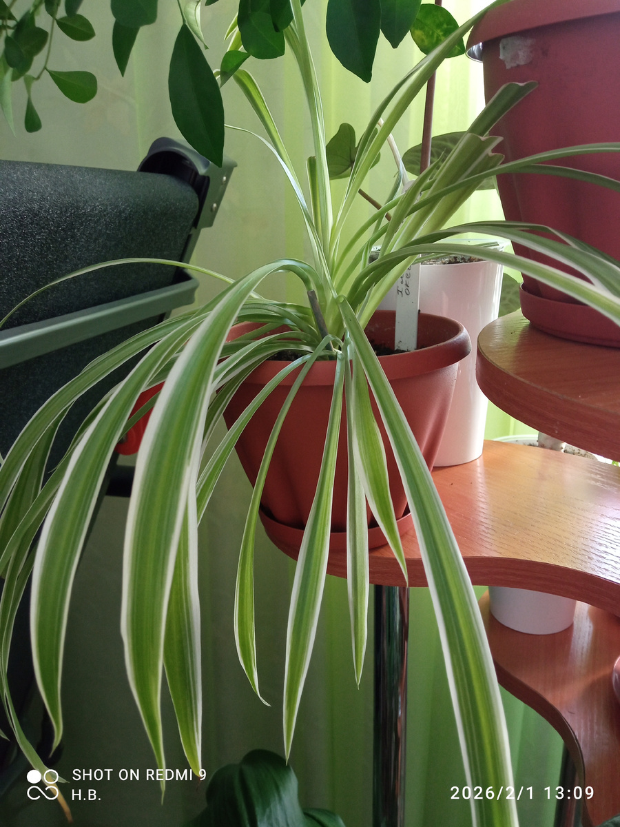 Здравствуйте. Сегодня будет заключительная часть, в которой я расскажу, какие растения еще у меня есть. И начнем с растений, названия которых начинаются на букву Х. 130. Хлорофитум вариегатный. Вот уж никогда бы не подумала, что вырастить хлорофитум будет так сложно. Покупала с детками, они так весело висели на длинных удочках. А какие милые белые цветочки распускались. Но так было недолго. Я, как "опытный" цветовод, обрезала всех деток, отправила их укореняться. Растение, а там было несколько жирненьких розеток, разделила и рассадила. В итоге хлорофитум на меня обиделся и вроде и растет, но как-то медленно и печально. 131. Хамелациум PURPLE PRIDE. Растение из семейства миртовых. Моя давняя хотелка. Несколько раз покупала и все мимо. Ну не хотели они со мной дружить. А две последние попытки увенчались успехом. Я даже не заметила, как из маленьких черенков выросли лошадки по метру. Как ни жалко было обрезать, все же немного сняла верхушку и поставила укореняться. Надеюсь что в скором вр