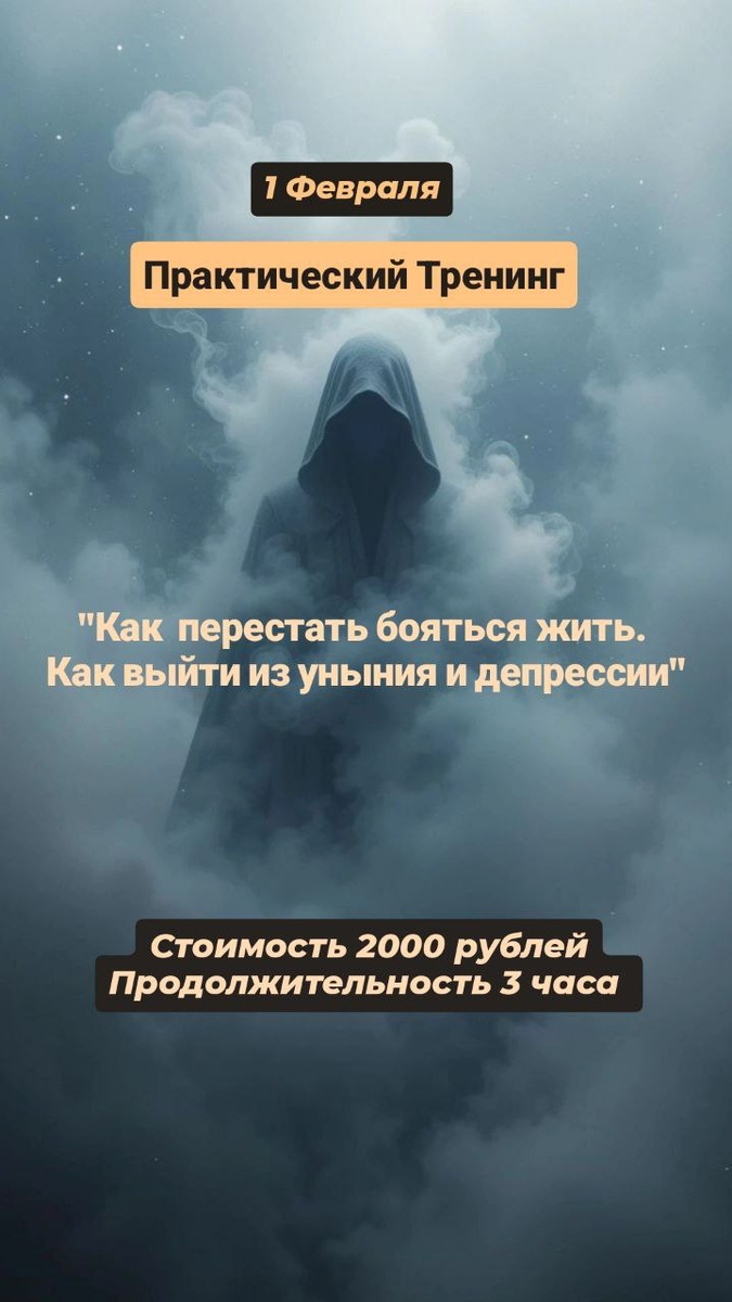 🔥Уже завтра 1 Февраля с 12–15 часов состоится познавательный и практический тренинг Ирины "Как перестать бояться жить