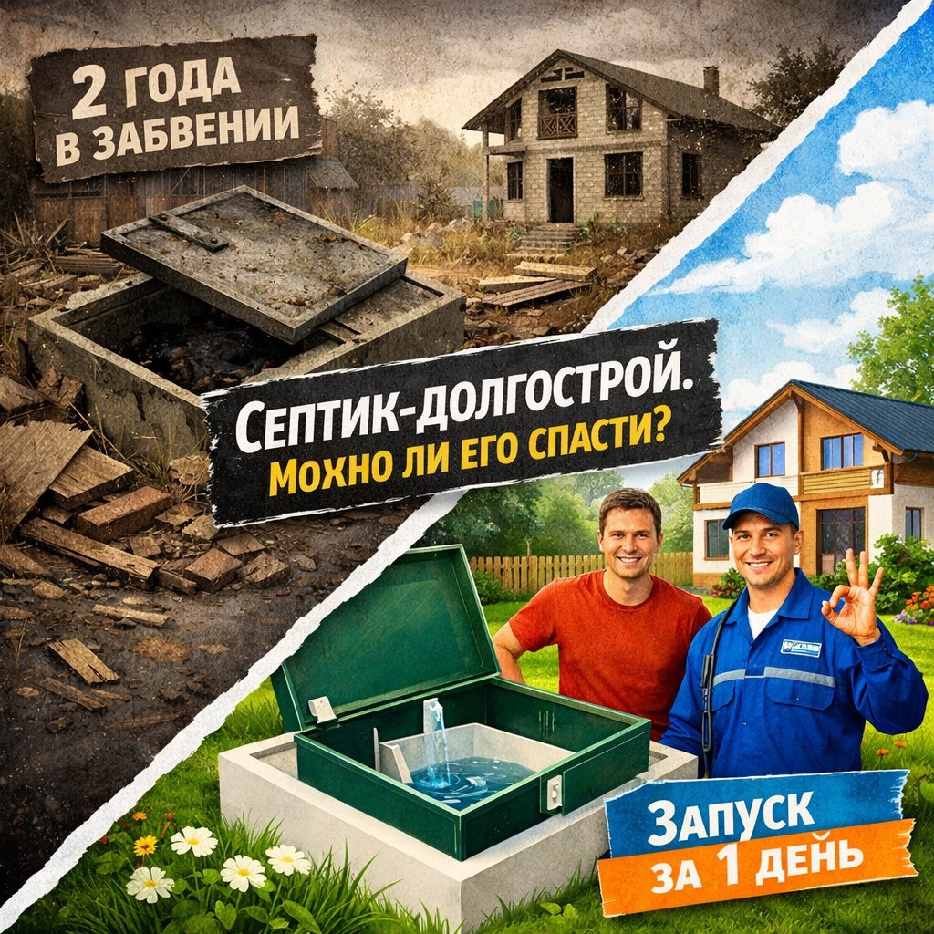 Вы купили участок с недостроенным домом. Помимо прочего, в земле уже стоит новенький (с виду) септик. Продавец махнул рукой: «Ставили три года назад, но не подключали, он же герметичный». Соблазн сэкономить и просто подключить его велик. Но именно так люди теряют сотни тысяч. Рассказываем, как мы спасли одну такую систему и что обнаружили внутри.