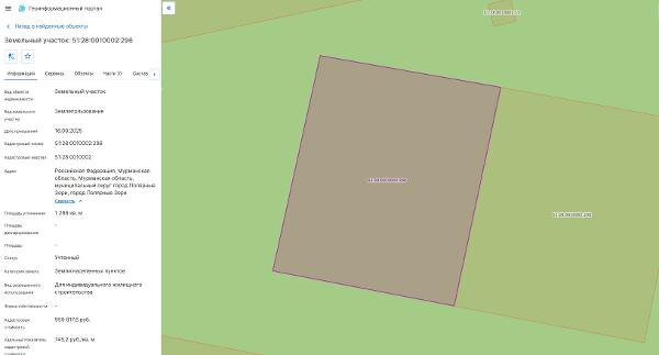 Название: Земельный участок с кадастровым номером 51:28:0010002:296, площадью 1288 кв.м, категория земель – земли населенных пунктов