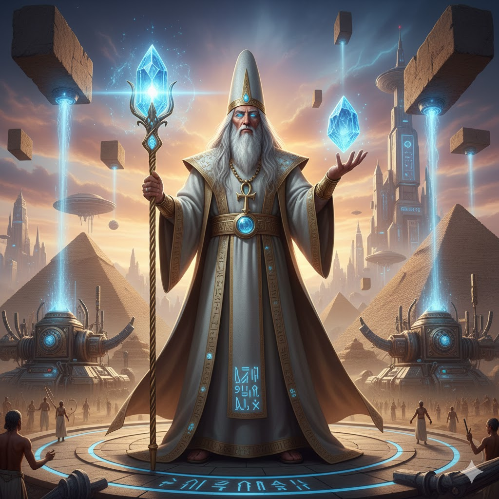 Когда корабль Тота причалил к берегам будущего Египта, его уже ждали. Ждали потомки гиперборейских родов, ушедших на юг после великого похолодания. Это были не дикари. Это были носители Ведического мировоззрения, знавшие о силе Рода, о законе Карны (кармы), о строении мира — Яви, Нави и Прави. Их технология была иной — не кристаллической, как у атлантов, а биоэнергетической, основанной на силе духа и резонансе с природой. Тот увидел в них не учеников, а братьев по знанию, потерявших часть технологий, но сохранивших суть. Он стал не учителем с нуля, а катализатором, помогающим вспомнить и применить забытое в новых условиях.