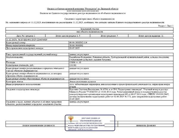 Название: Местоположение (адрес): Липецкая область, р-н Долгоруковский, с/п Стегаловский сельсовет, деревня Петровка Площадь: 13000 +/-40