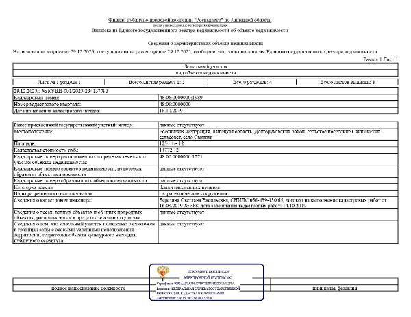 Название: Местоположение (адрес): Липецкая область, р-н Долгоруковский, с/п Свишенский сельсовет, село Свишни Площадь: 1254 +/- 12 кв