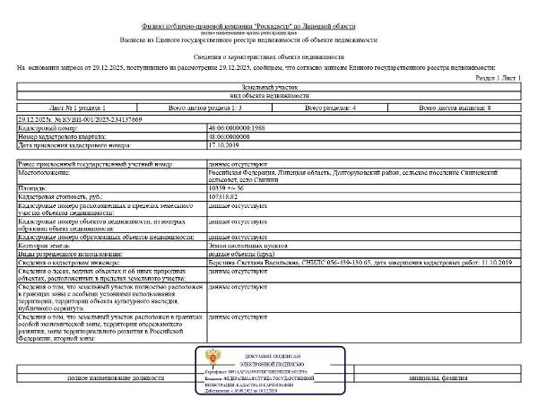 Название: Местоположение (адрес): Липецкая область, р-н Долгоруковский, с/п Свишенский сельсовет, село Свишни Площадь: 10339 +/- 36 кв
