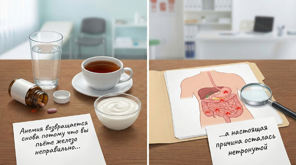Анемия возвращается снова потому что вы пьёте железо неправильно — а настоящая причина осталась нетронутой