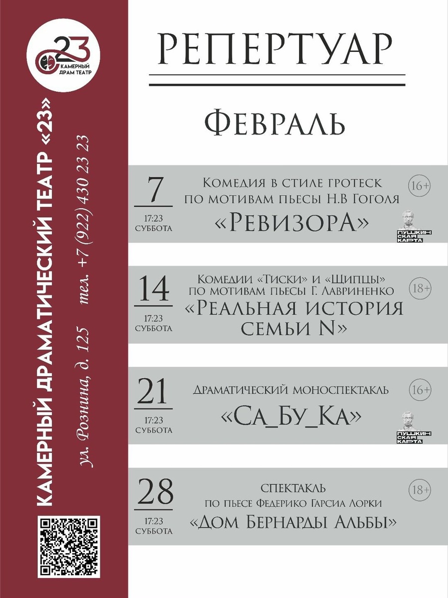 Постановки раз в неделю, но все они - с душой. По ссылке можно увидеть аннотации к спектаклям и купить билеты. https://vk.com/wall-198703144_1544