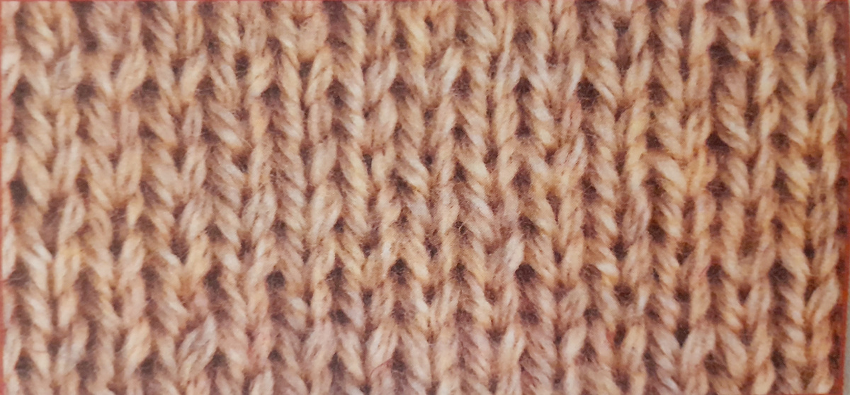 · Изнаночная сторона: тоже лицевые петли (но немного смещённые из-за того, что провязывались с изнаночной стороны)