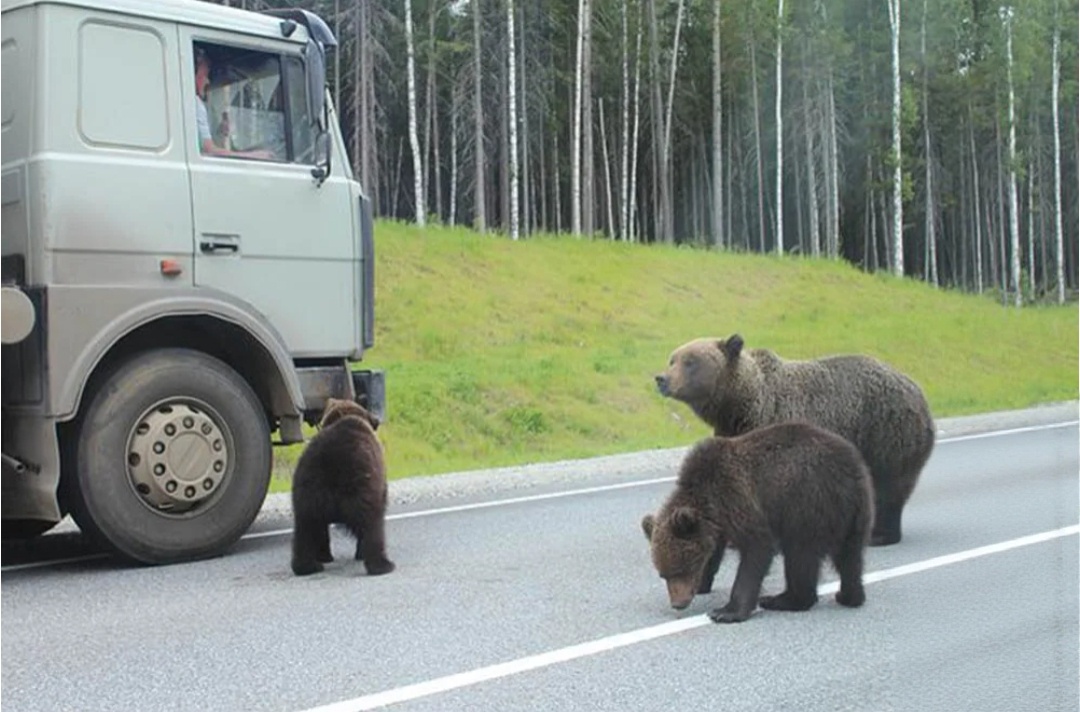 Фары «дальнего» выжгли из мрака картину, от которой кр..вь ударила в виски, а сон слетел как рукой. На краю асфальта, прямо под знаком «Дикие животные», стояла медведица. Не просто крупная, а исполинская, с мощной, покатой холкой и тяжёлой головой. И не одна. К её боку, цепляясь в густую, свалявшуюся шерсть, жались два медвежонка. Но что было по-настоящему страшно — она не смотрела на дорогу. Она смотрела на него. Прямо в свет фар. Её маленькие, глубоко посаженные глаза, отражая жёлтый свет, не мигали. И в них не было ни злобы, ни паники бегущего зверя. В них была тихая, леденящая душу решимость.