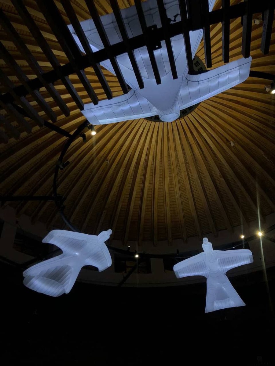 » 🧍♀ Это выставка-диалог между небом и землёй: между световыми объектами Тани Баданиной и геометрическими живописными структурами Владимира Наседкина. Экспозиция открыта до 15 февраля.