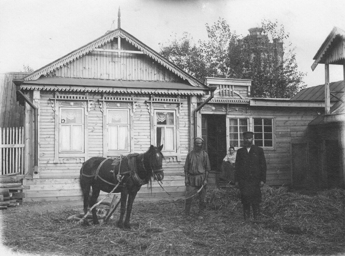 Нечастое появление в кадре "напарадной" стороны крестьянского дома-усадьбы. Обычно всё же если и фотографировались у дома, то со стороны улицы. Здесь же мы видим хозяйственную изнанку усадьбы: обильно усыпанный соломой двор, справную лошадку, крепких мужиков-хозяев, хозяйку сидящую на ступеньках. Сам дом новенький и не лишён скромного эстетического обаяния. Лично мне более всего интересно строение между самим домом и хозпостройками. С улицы через эту пристройку вход во двор, не самое частое решение. #ЧерноеБелое Ещё больше фотографий: ____________ Telegram | ВК | MAX | Дзен | Пикабу