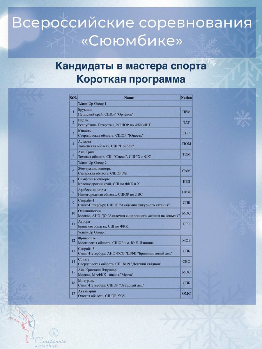 31 января Всероссийские соревнования «Сююмбике» Кандидаты в мастера спорта Онлайн-табло соревнований Онлайн-трансляция соревнований III этап Кубка России Мастера спорта Онлайн-табло соревнований Онлайн-трансляция соревнований #ффккр #синхронноекатание #вс_сююмбике #3_ЭКР