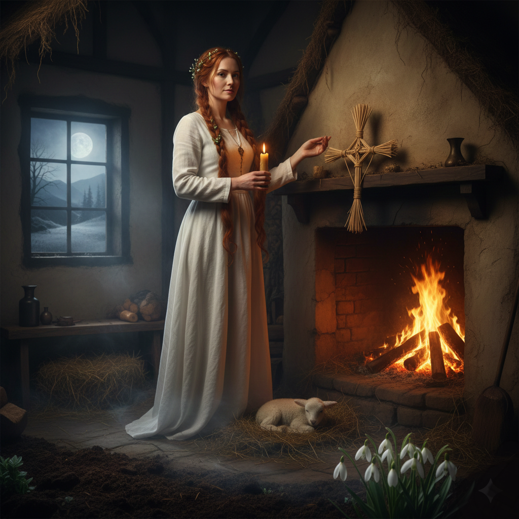 Когда февраль накрывает мир серыми сумерками, а зима кажется бесконечной, наступает Имбольк (1–2 февраля) — один из самых загадочных праздников Колеса Года. Это время, когда весна еще не видна глазу, но уже «слышна» сердцем. Между сном и пробуждением Само название праздника, происходящее от древнеирландского i mbolg, переводится как «в животе». Это метафора Земли, которая вынашивает новую жизнь. Как в сказке о Хранительнице, Имбольк напоминает нам: отсутствие видимых изменений не означает отсутствие жизни. Под толстым слоем снега и льда уже начинают двигаться соки, а семена готовятся к своему первому рывку. Бригитта: Богиня трех огней Главным лицом этого времени является Бригитта — кельтская покровительница поэзии, целительства и кузнечного мастерства. Она олицетворяет три вида огня: Огонь вдохновения (в голове поэта). Огонь созидания (в кузнице). Огонь исцеления (у домашнего очага). В Имбольк мы зажигаем свечи, чтобы пригласить эту светлую энергию в свои дома. Это не яростное