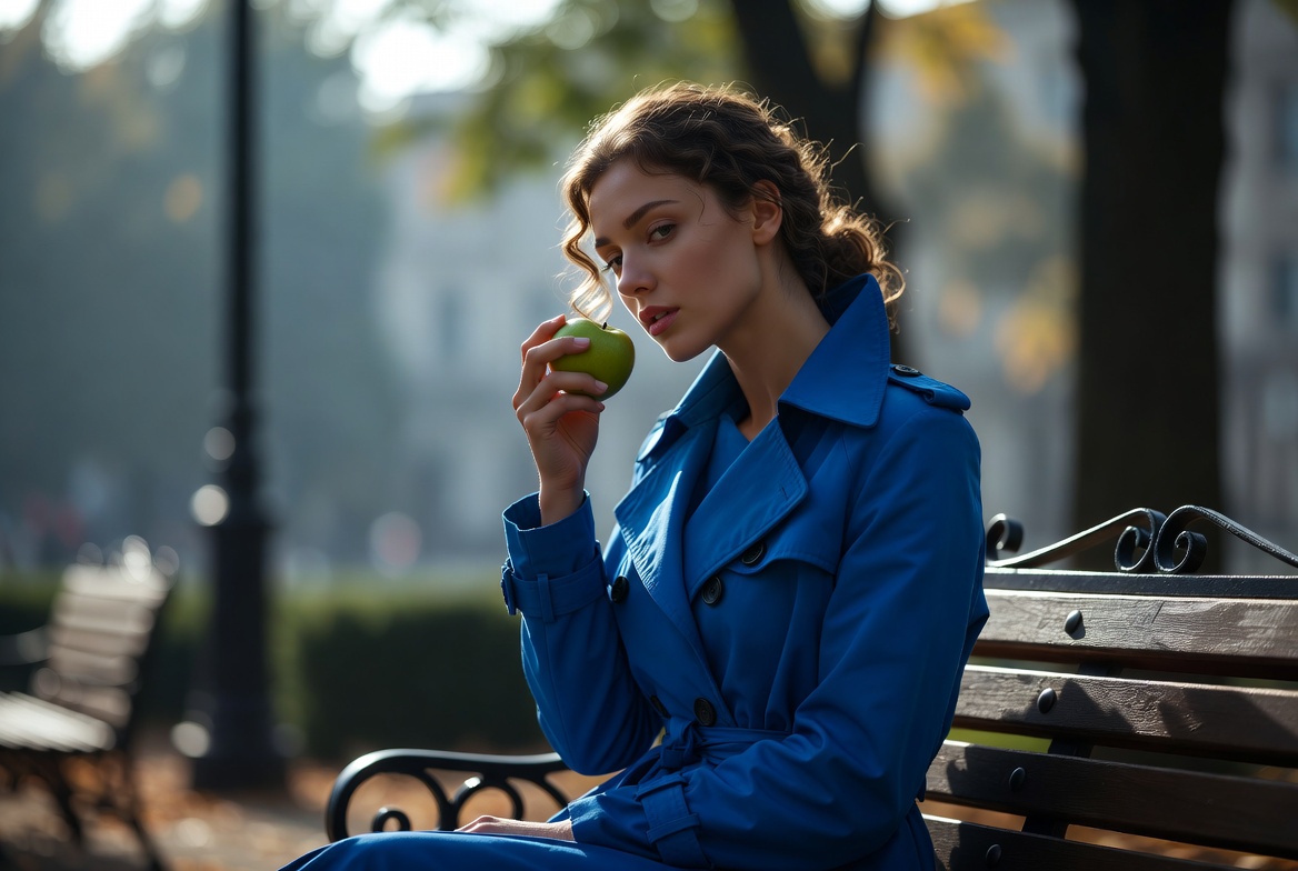 Через неделю снова пошёл туда же. Четверг был, примерно то же время. Сижу на той же скамейке, смотрю в телефон. Садится рядом та же женщина. В том же синем плаще. Достаёт из сумки яблоко. Я посмотрел на неё внимательнее. Точно та же. Даже причёска такая же. Подумал — ну совпадение, может, она тут работает рядом, обеденный перерыв в это время. Люди же привычки имеют. Ничего странного.