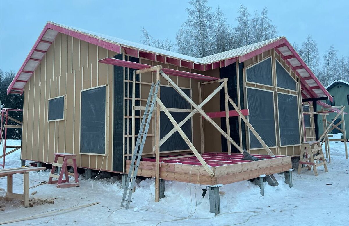 !🏗️ Здесь полным ходом идёт строительство уютного одноэтажного дома по нашему суперпопулярному проекту 🔗«К-11». Этот дом наша семья заказчиков строит с использованием государственной программы «Семейная ипотека» — отличный способ сделать мечту о собственном доме реальностью! На этой неделе завершили важнейший этап: ✅Возведен силовой каркас — основа будущего дома, его «скелет». ✅Смонтирована надежная кровля — теперь внутренним работам не страшна непогода. ✅Установлена ветрозащита — это гарантия того, что в доме будет тепло, уютно и не продуваемо. Сейчас строение уже хорошо защищено от внешней среды, и бригады приступают к следующей фазе. 👌🏼 Для вашей финансовой безопасности важно: вся работа ведётся с использованием эскроу-счетов. Это значит, что ваши средства надёжно защищены банком до завершения ключевых этапов строительства. Мы ценим ваше доверие и работаем максимально прозрачно. Хотите такой же тёплый и технологичный дом? Проект 🔗«К-11» — это продуманная планировка, оптим