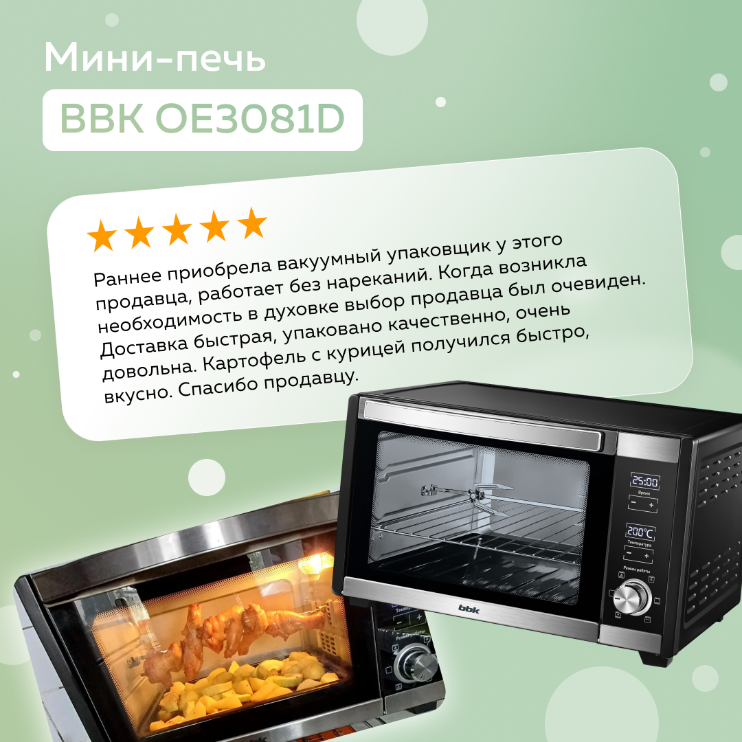Елена – наш покупатель! Она выбрала мини - печь bbk oe3081d. Функциональная, стильная мини-печь подойдет даже для маленькой кухни.Всегда приятно, когда покупатели довольны и делятся с нами своими впечатлениями!Узнайте подробности в отзыве!