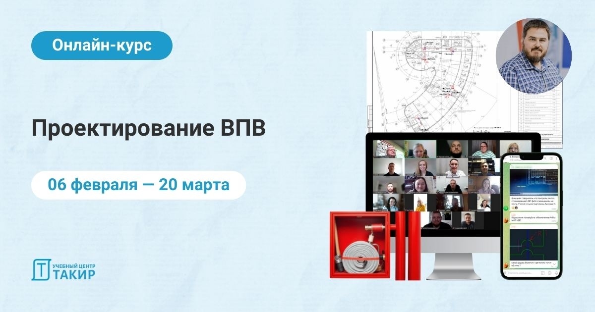 Курс по проектированию ВПВ Запись на новый практический онлайн-курс «Проектирование ВПВ» (https://clck.ru/3RYsWL) продолжается! Автор и преподаватель курса: Антон Андреевич Гусельников 🔥 🔵 Инженер-проектировщик водяного АУП и ВПВ для объектов гражданского и промышленного назначения 🔵 Выпускник АГПС МЧС РФ – инженер по специальности “Пожарная безопасность” 🔵 Среди значимых объектов: склады Wildberries, Лахта-Центр и другие известные компании. 📆 Даты курса: 06 февраля — 20 марта (6 недель, онлайн) На курсе вы: ✅ Научитесь проектировать ВПВ ✅ Узнаете варианты технические решения и будете готовы к проектированию ВПВ для разных типов объектов ✅ Посмотрите типовые ошибки проектирования ВПВ и научитесь их избегать в реальных проектах ✅ Повысите свою рыночную стоимость как специалист по проектированию ВПВ ➖➖➖➖➖➖➖➖➖ Кому подойдет этот курс: • Начинающим проектировщикам ВПВ • Проектировщикам ВК • Представителям монтажной компании • Всем кто заказывает и/или проверяет проекты ➖➖➖