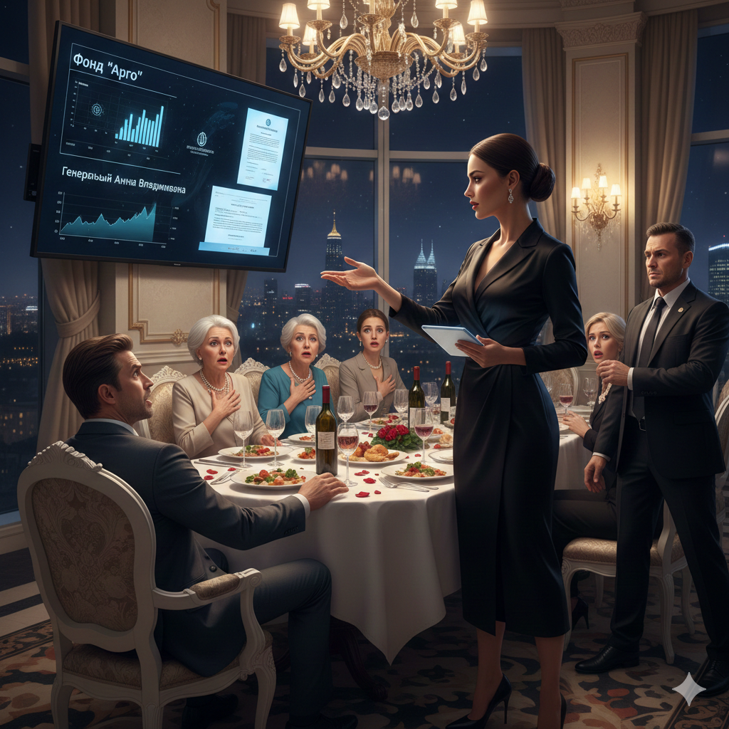 — Так вот, — я прошла к большому экрану, на котором до этого крутились фотографии «счастливой семьи». — Сегодня утром фонд «Арго» завершил сделку по поглощению остатков твоей доли, Кирилл. А я, как генеральный директор этого фонда, приняла решение о полной смене руководства.