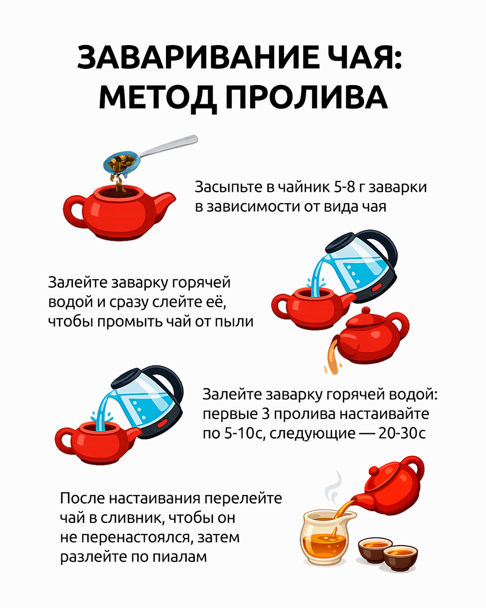 Китайские чаи — это целый мир вкусов и ароматов, который раскрывается только при правильном заваривании. Температура воды, время настаивания и количество проливов имеют решающее значение — подробную инструкцию по завариванию чая смотрите на карточках. Соблюсти все эти нюансы вам поможет чайник Evelux: с ним вы быстро вскипятите воду. Ознакомиться с моделями вы можете по ссылке: https://clck.ru/3RXKre